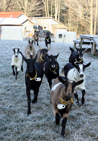 We moved four young goats over to the herd this week. It’s like graduation. I’m actually really attached to the babies that are now 9 months old, so not really babies anymore. They are getting big and once they start eating the dairy goat diet and are pregnant, they will look like the adults. Mariposa, Shelly, Eunice, and Ursula were the most sociable so we will let them be leaders for the others when it’s time for them to join the herd. Half of the young ones have been bred so there are only five goats left!