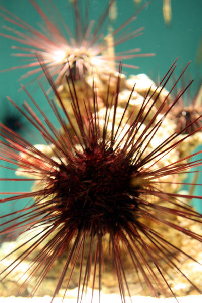 Environmental stewardship was a major theme at the Monterey Bay Aquarium. When we first entered, a young women was showing a crowd of 75 people how much plastic was pulled out of a dead albatross’ stomach. I engaged in a long conversation with the man behind the seaweed display about feeding goats kelp, which eventually turned into deconstructing the industrial food system. When we left, our pockets were full of small brochures about which kinds of fish are OK to eat and our mood was somber. Such rare beauty under the sea, and to think it’s being so heavily damaged by people. Fragile, fragile ocean full of great diversity.