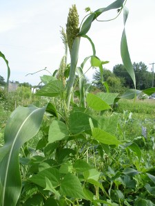 Corn, beans, and squash are three plants that can be grown together. Each one benefits the other- this is called companion planting. First, you plant the corn and wait for it to be a few inches high. Then, the pole beans are planted in a circle around the corn stalk, hopefully climbing up the stalk for support. Once the beans have sprouted, plant the squash, with the intention of shading out weeds with its large leaves. Corn also uses a lot of nitrogen to grow, so having the beans close by will “fix the nitrogen,” or put it back into the soil for next season.