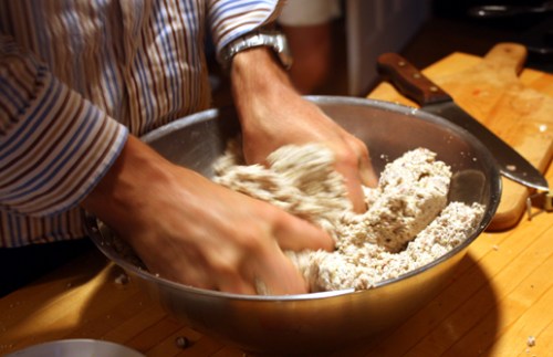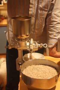 We prepared the three sisters for a Mexican themed dinner one evening to celebrate the harvest. Susan and I grew a multicolored hard kernel corn called Painted Mountain from FEDCO seed company. Once the corn had dried out, we took the kernels off, cooked them in water and pickling lime to remove the husks, then ground them with a grain mill to make flour for tortillas.