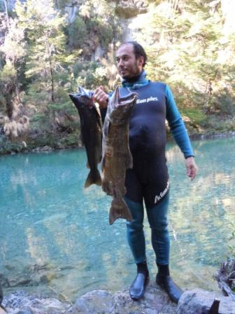 I plunge into the current so I can effortlessly be taken back to my friends and suddenly everyone is shouting. Pastor has harpooned an enormous trout! La Trucha! Not me, thank goodness. I crawl onto the rock where he has just ended the fishes´ life. I hear a splash and he has caught another one almost twice the size, 2 feet long! I sit next to him watching as he wrestles with it and bashes its head (careful not to destroy the precious cheek meat). It was all very exciting and emotional- taking the life of a very ancient fish so quickly. It was the grandfather of the river and now…ASADO!
