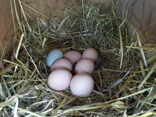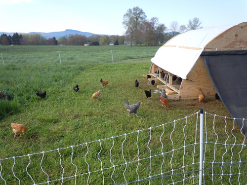 Now my egg supply comes from Old Friends Farm. We have over 150 layers and 200 chicks that are growing very quickly. They will be our layers for next season when we cull the hens over three years old. The chicks moved to fresh pasture and are very happy with their new home. What a beautiful new coop! And look at their view!