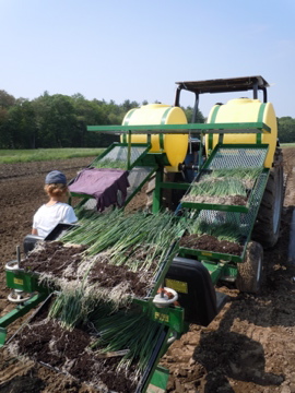 Missy and Casey, farm operators and owners, are wonderful people and I am very grateful to have them as my bosses. They balance each other well. Missy gets silly when we all need a laugh and Casey bakes delicious muffins containing seasonal fare such as dandelion flowers. Lisa, assistant manager, can be very funny and keeps the team spirit high. She worked at Brookfield Farm and I can tell I have a lot to learn from her. Phillip works part time but I always notice when he is around because his calm presence resonates, except when directing the transplanter driver to start and stop. Buzzy, who you may see at the Amherst Market on Saturdays, is a natural farmer, even though it’s his first season farming. Tamsin is really good at bringing people together. She worked at Red Fire Farm last season and organized the Young Farmers Mixer. I admire how she models the importance of self-care even during physically demanding days.
