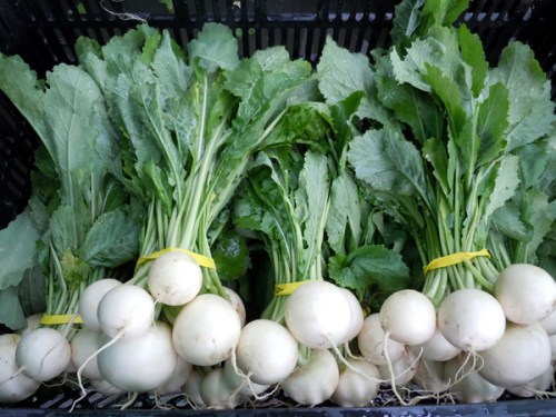 Speaking of the state of the world, I can’t neglect to mention the difficult weather patterns and the affect they have had on the farm. We have been extremely lucky with only a few crop losses due to too much rain, then high temperatures, then cold, then high again. The amount of rain we had this spring leached nutrients from the soil where we had a greens succession planted, causing the leaves to turn yellow and tiny plants to bolt (flower).