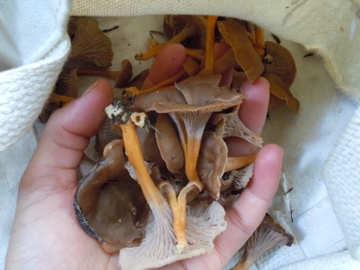 Bright orange chanterelles call out along trail-sides smelling of apricots.