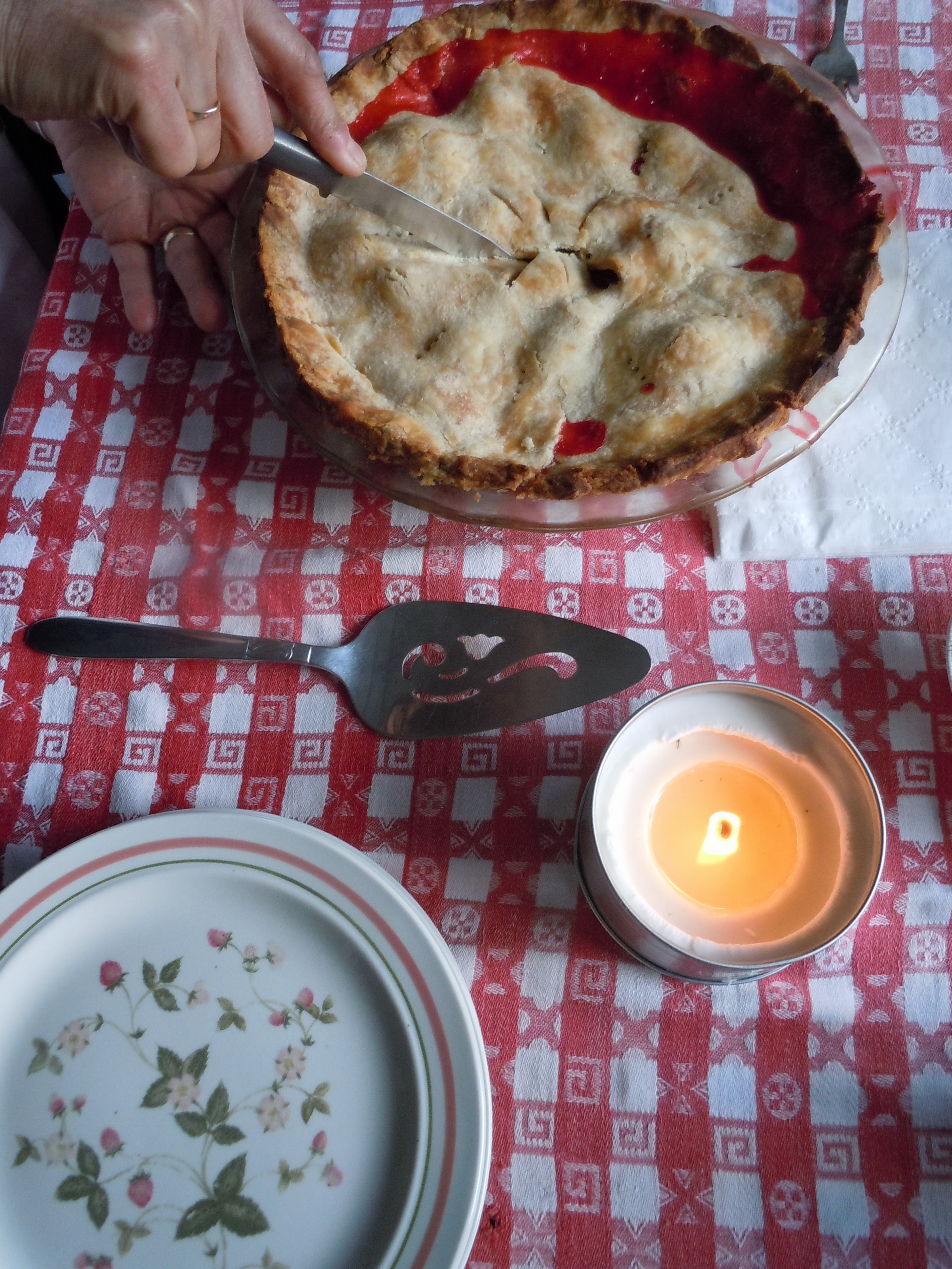 DSCN5283Well-balanced rains and sunshine, along with the hard work of our farmers, have produced delicious strawberries. What to do with such bounty? I froze 8 quarts for smoothies the rest of the year and of course, strawberry rhubarb pie was in order.