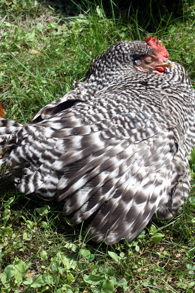 It is one thing to watch a cabbage grow from seed to table, another to watch a live animal. I had killed only one chicken prior to deciding to raise 20 meat birds this summer. Nine weeks into the project, I had 18 monstrous chickens and one odd ball Barred Rock Rooster named Einstein. He was the only one that acted like a chicken, pecking, scratching, foraging in the grass for bugs. Apparently chickens are very social animals because Einstein still layed around most of the day, like the Cornish X Rocks.
