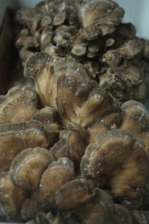 The grey/brown mushroom above is Hen of the Woods. This is one mushroom of 15 that I harvested. Each weighs between 3 and 8 pounds. That’s a lot of mushroom!